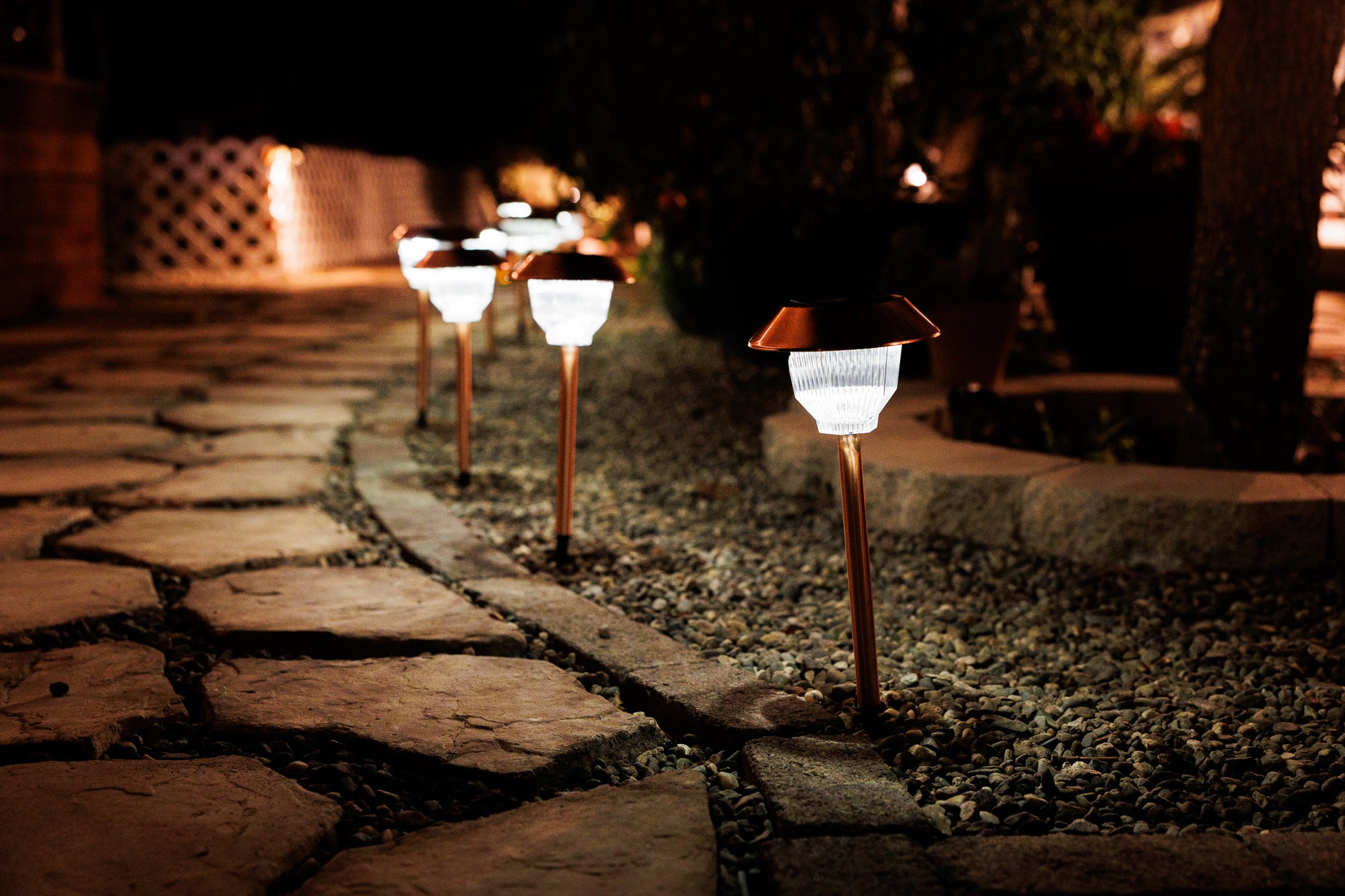 Set of 12 Solar Power Rockwell Path Copper Finished Lights 33865/12