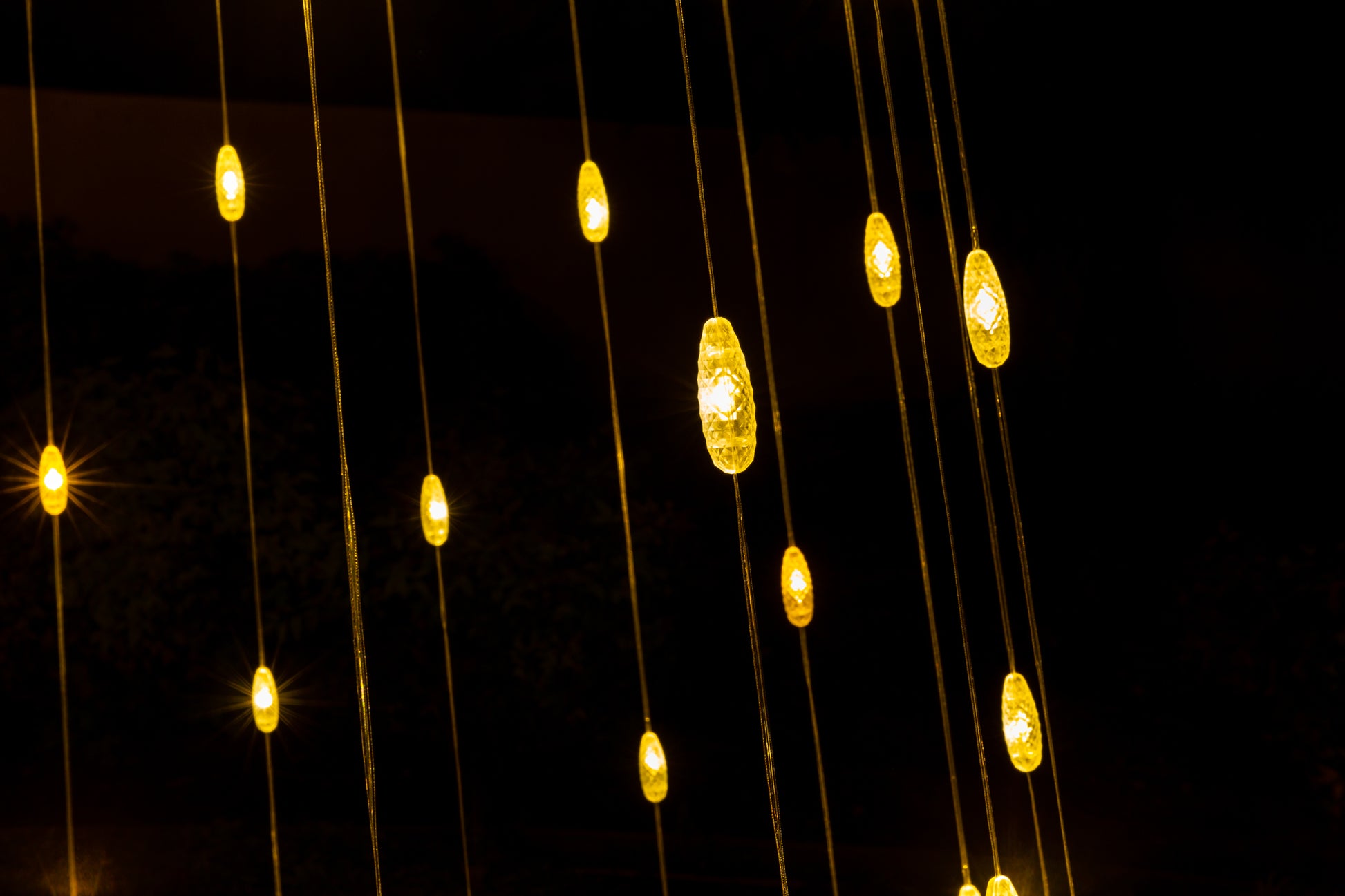 - What’s Included: 1x – Base, 1x – LED strands set, 1x – AC adapter, 1x – IR Remote, 1x – 33ft long extension cable