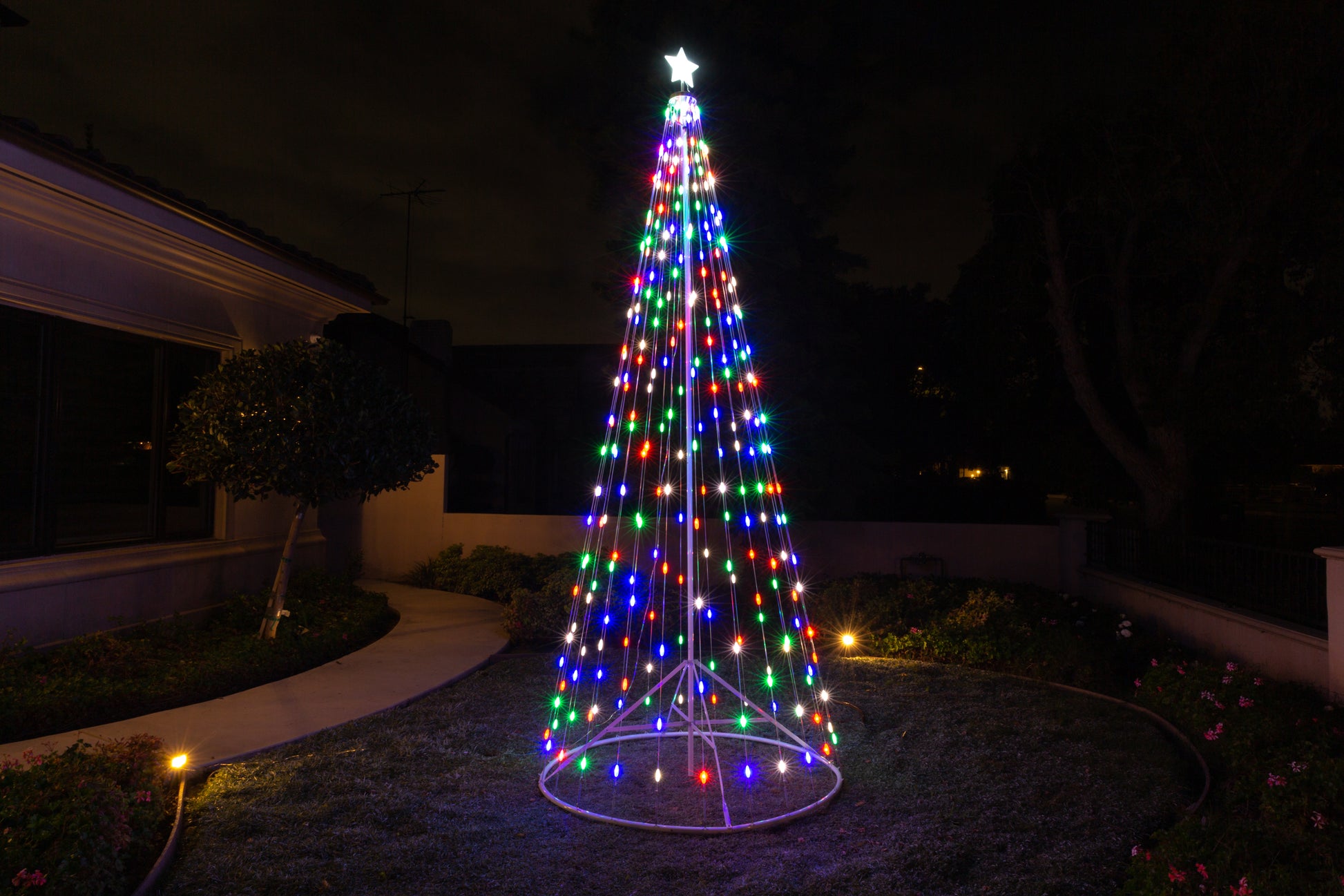LED Holiday Decor - Outdoor Multi-Color or Warm White Light Strand Tree with Collapsible Base and Wireless Remote